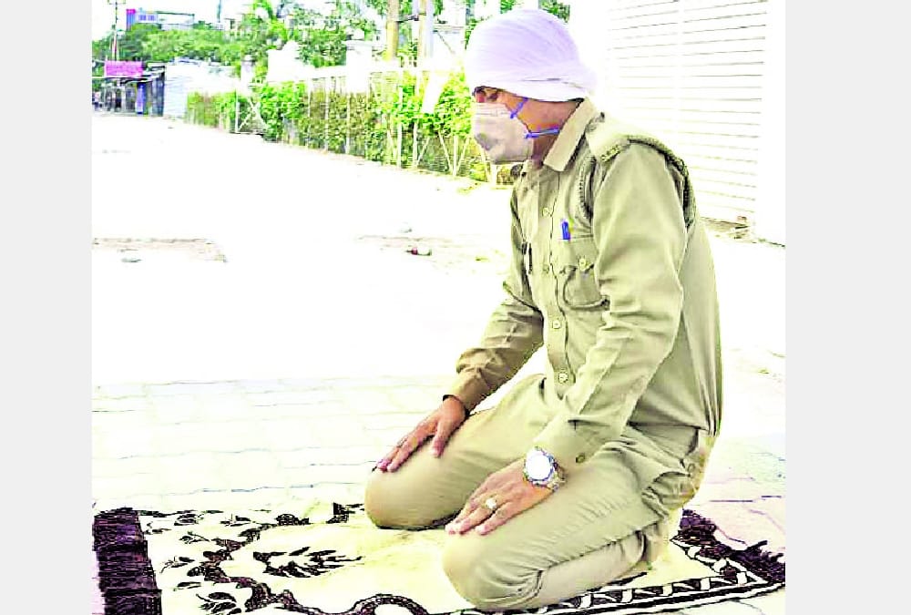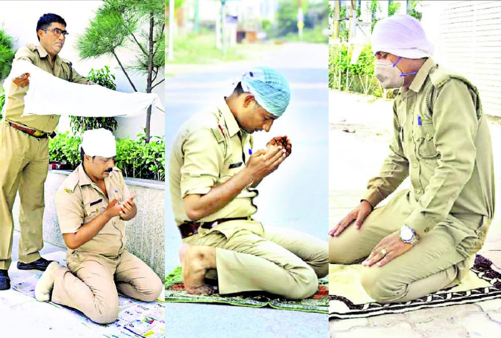 रमजान के महीने में ड्यूटी करने वाले पुलिसकर्मी दिन भर रोजा रख सड़क पर नमाज अदा कर रहे हैं और अपनी ड्यूटी भी निभा रहे हैं।