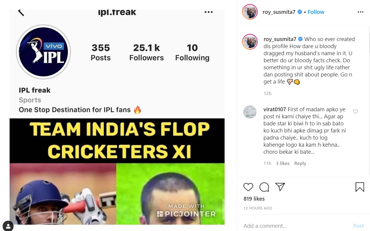हालांकि इसके बाद फैंस ने उन्हें ऐसा पोस्ट न करने की सलाह दी. एक फैन ने कहा कि अगर आप बड़े स्टार की बीवी हैं तो इन सब बातों का आपके दिमाग पर असर नहीं पड़ना चाहिए. कुछ तो लोग कहेंगे, लोगों का काम है कहना. छोड़ो बेकार की बात.