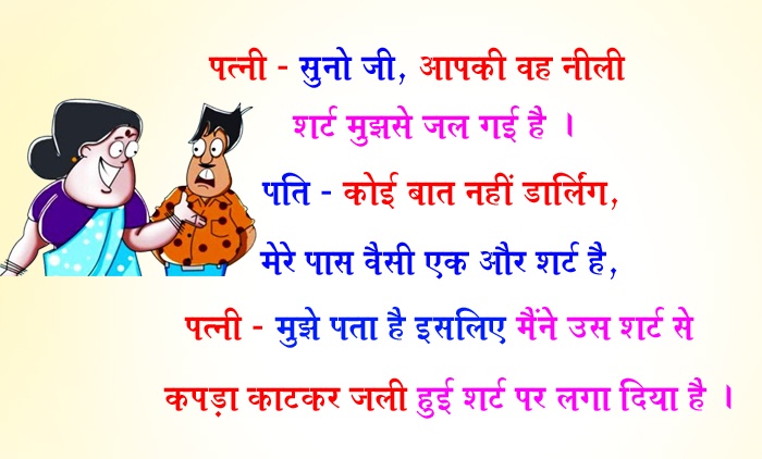 पति- कोई बात नहीं डार्लिंग, मेरे पास वैसी एक और शर्ट है,